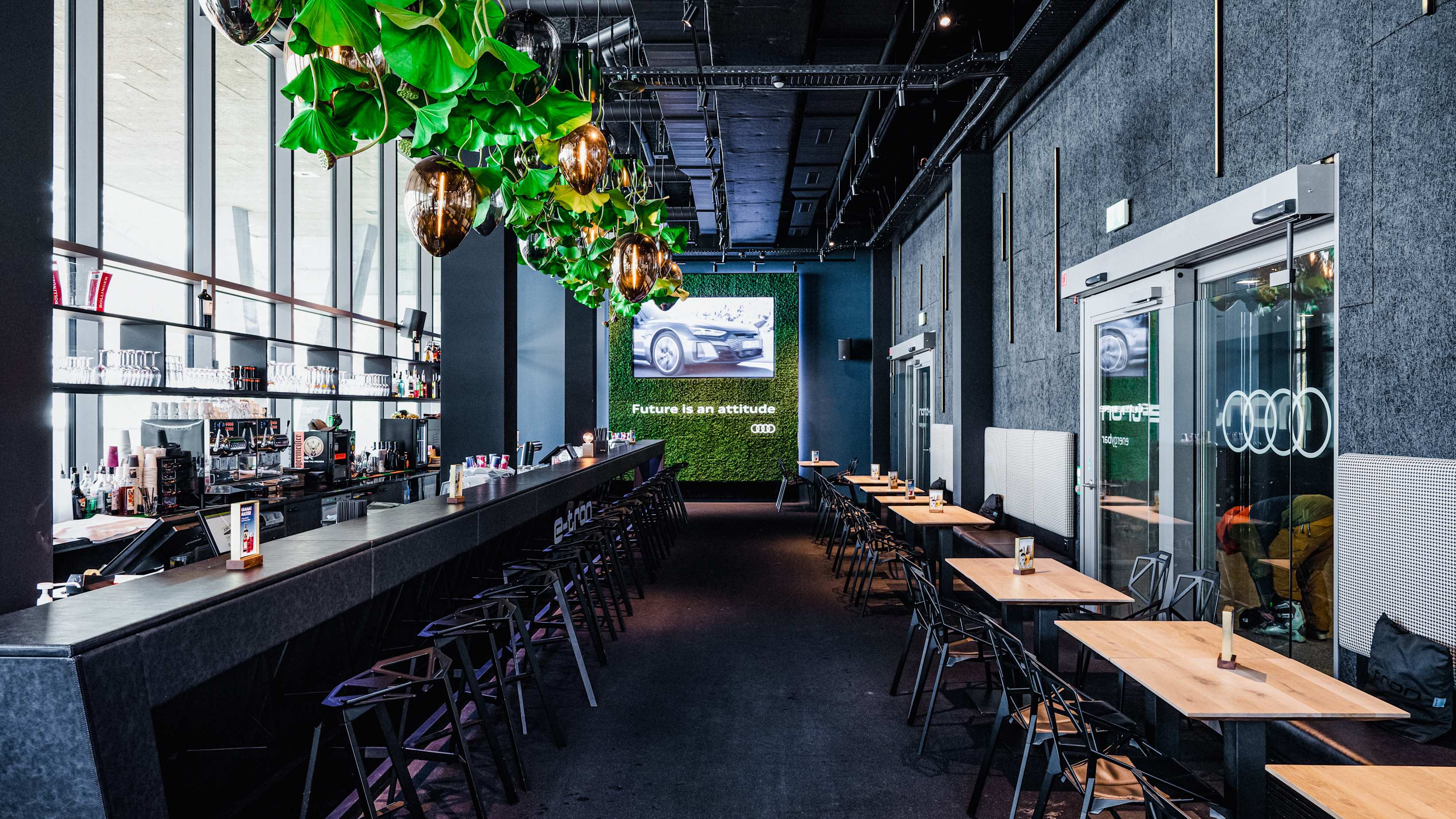 In der e-tron energy bar dreht sich alles um den Elektro-SUV der Extraklasse von Audi: hochwertiges Interior-Design, industrielles Look-and-feel, einfach alles, was den e-tron ausmacht. Dazu passend ist das Angebot an Drinks und Speisen. Fancy Cocktails, edle Tropfen für die Weinliebhaber, eine breite Palette warmer und kalter Getränke und eine Auswahl von Tapas. Diese Kombination von High-tech und erlesenen Genüssen bringt jeden Gast ins Schwärmen.