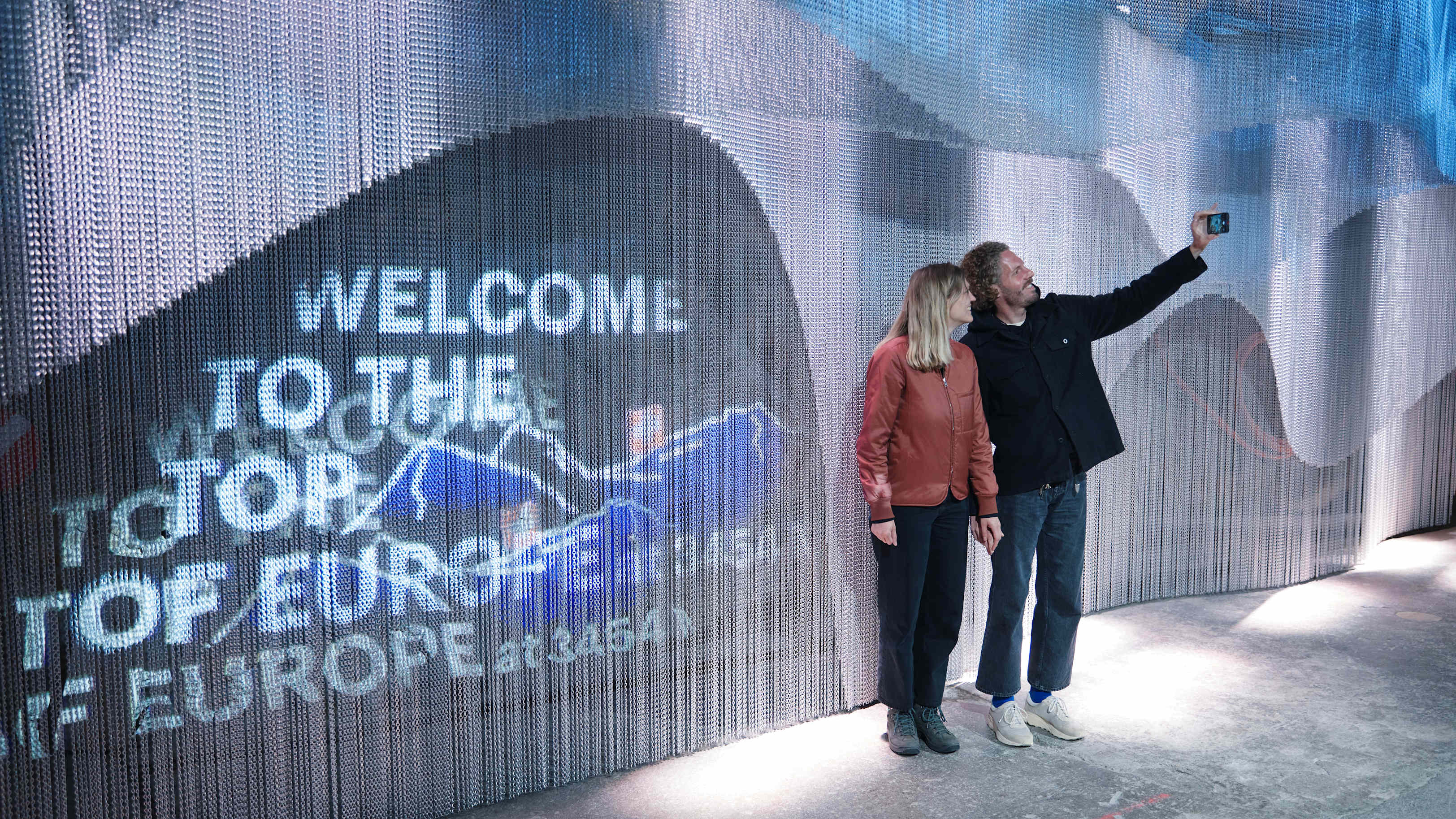 Ankommen und staunen. Beim ersten Schritt aus der Jungfraubahn weiss man bereits: Hier tritt man in eine andere Welt ein. Begrüsst wird man im höchstgelegenen Bahnhof Europas von pfeifenden Bergdohlen und einem besonderen Lichtspiel. Die Projektion auf die einzigartigen Kettenvorhänge erinnert an sonnengefärbte Eishöhlen und Alpenhänge am Morgen. Reisende werden vom Licht zum Berghaus geleitet – hier wartet eine Erfrischung in der Pikantus Lounge, und der erste Blick auf die majestätische Schönheit des Aletschgletschers, der sich durch die atemberaubende Alpenlandschaft schlängelt. Auf 3'454 Metern Höhe erlebt man hier einen unvergesslichen Tag, ob beim Rundgang durch den Eispalast mit faszinierenden Skulpturen oder auf dem Gletscherplateau mit Blick auf die Viertausender und den längsten Gletscher der Alpen. Mit der Lichtstimmung des Sonnenuntergangs im Rücken und Eisknistern im Ohr tritt man in der Bahnhofshalle schliesslich die Heimreise an, bereichert um die Erfahrung alpiner Höhen.