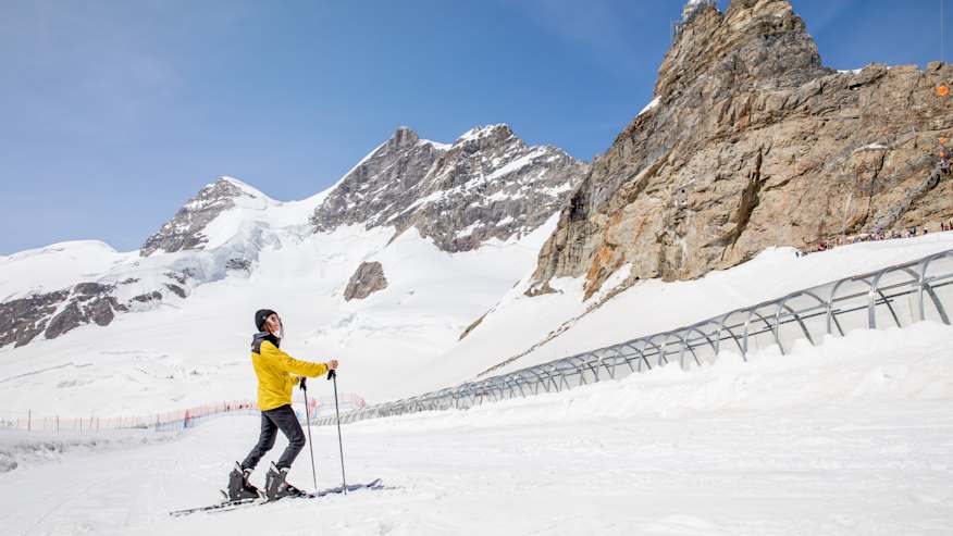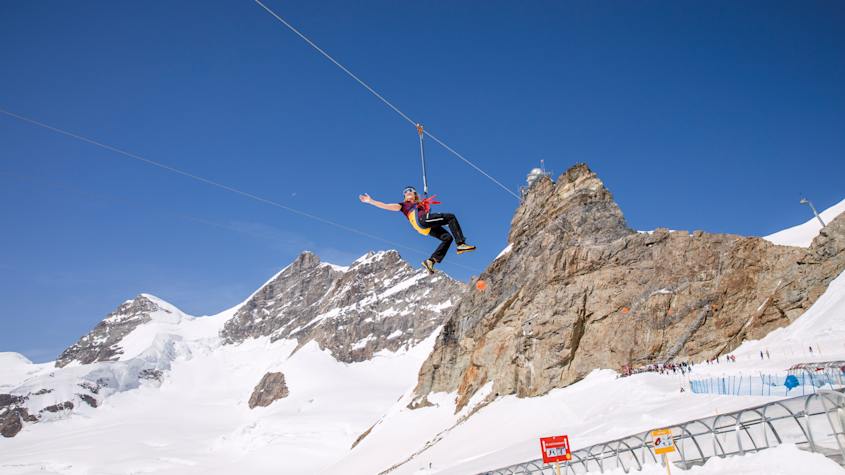 Zu heiss im Flachland? Wer mit Faulenzen an der Sonne nichts anfangen kann, ist auf dem Jungfraujoch genau richtig. Im Snow Fun Park können sich Schneeliebhaber abkühlen und an der Bar erfrischen. Mit der Seilrutsche Flying Fox fliegt man über das ewige Eis des Aletschgletschers, dem längsten Gletscher in den Alpen. Sommergefühl kommt dabei auch im Schnee auf. In den heissesten Monaten liegen die Temperaturen auf dem Jungfraujoch regelmässig über der Nullgradgrenze.