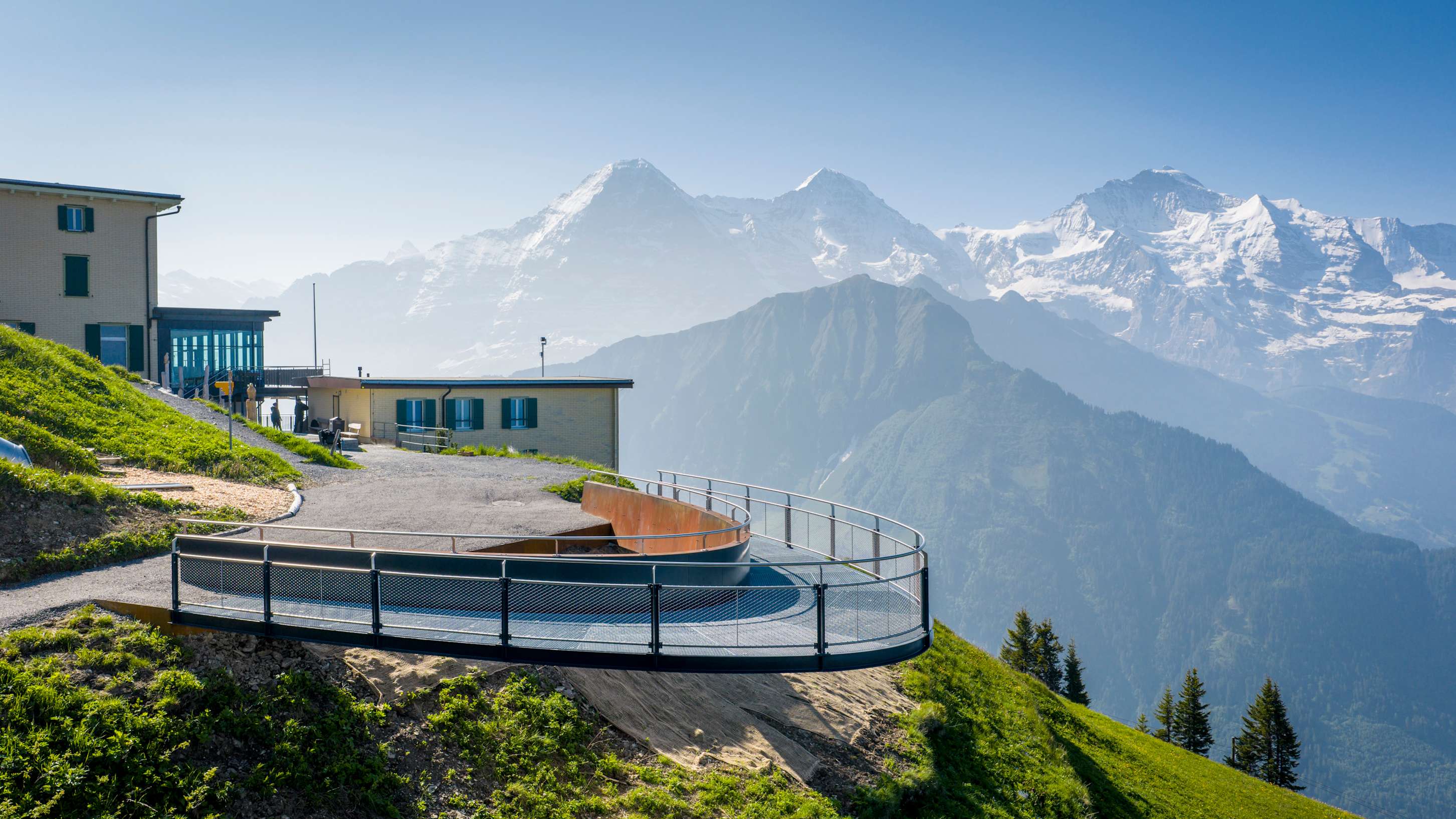 Ein paar Schritte auf dem Schynige Platte Skywalk – und schon eröffnet sich Ihnen ein atemberaubendes Panorama der Berner Alpen. Der Spaziergang über die Aussichtsplattform beim Berghotel Schynige Platte mag kurz sein, doch zu sehen gibt es einiges: Während Sie laufen, wandert Ihr Blick über blühende Alpwiesen und umliegende Gipfel, bis hin zum Thunersee, tief unten im Tal.