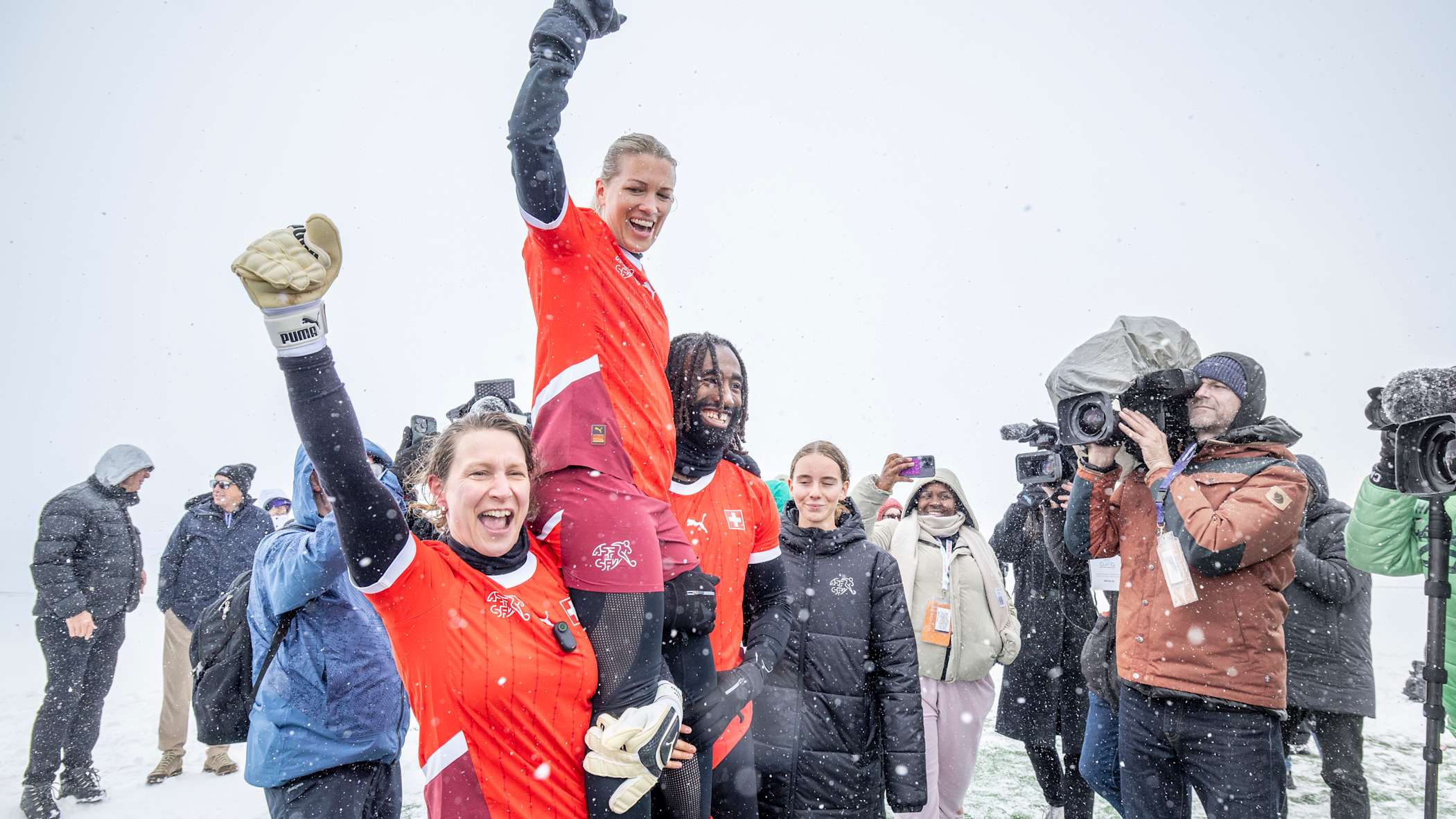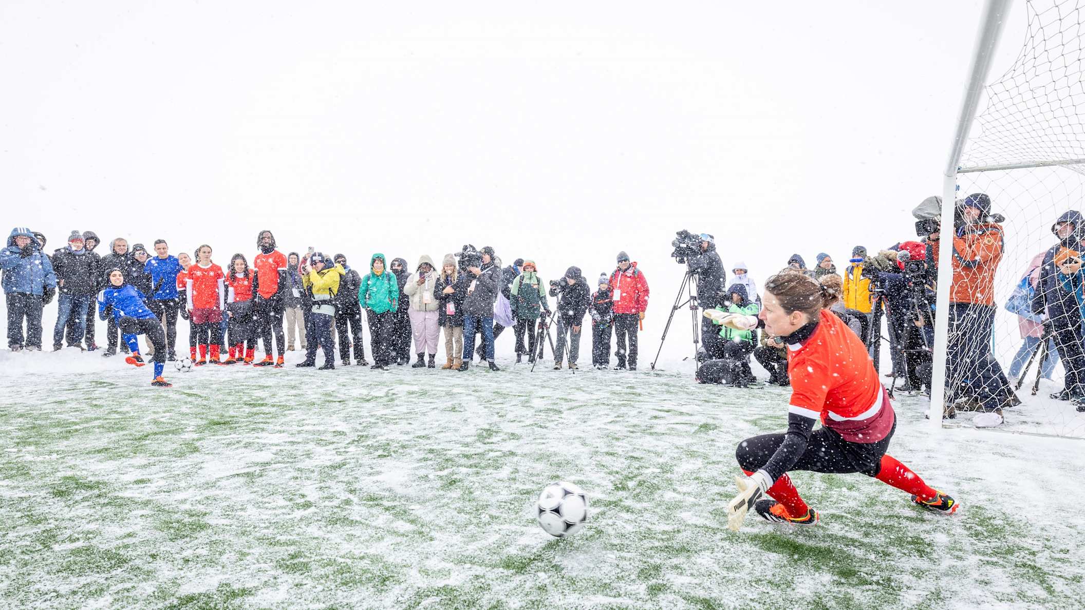 Es war eine illustre Schar an aktuellen und ehemaligen Schweizer Nationalspielerinnen, die sich auf dem Jungfraujoch – Top of Europe versammelt hatte. Die Vorreiterinnen Lara Dickenmann und Kathrin Lehmann spielten zusammen mit der 80-fachen Internationalen Fabienne Humm sowie den Nachwuchs-Nationalspielerinnen Elynn Raymond und Luana Blanco. Dazu gesellte sich mit Johan Djourou ein ehemaliger Nati-Spieler und heutiger sportlicher Koordinator beim Frauen-A-Nationalteam.