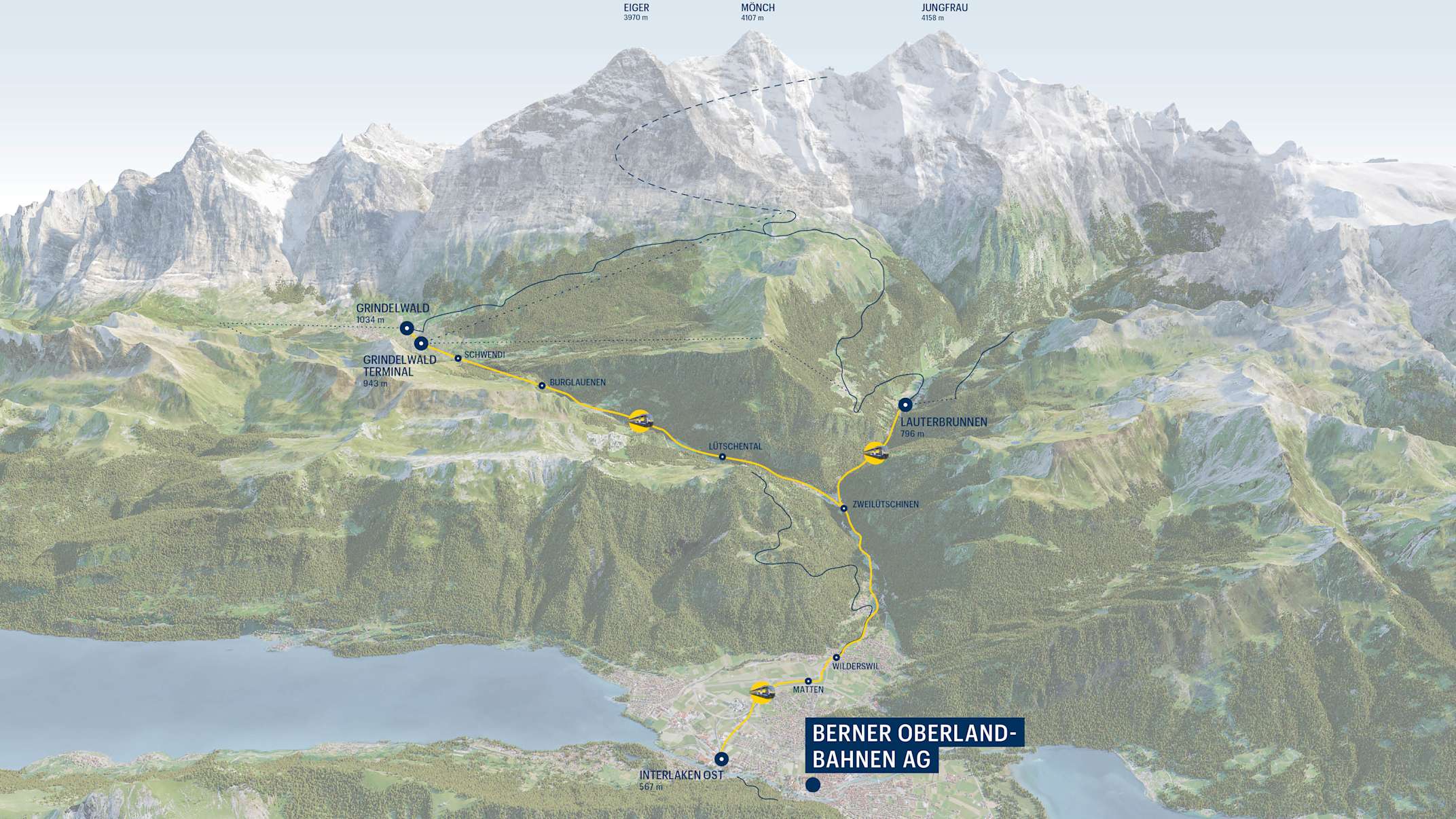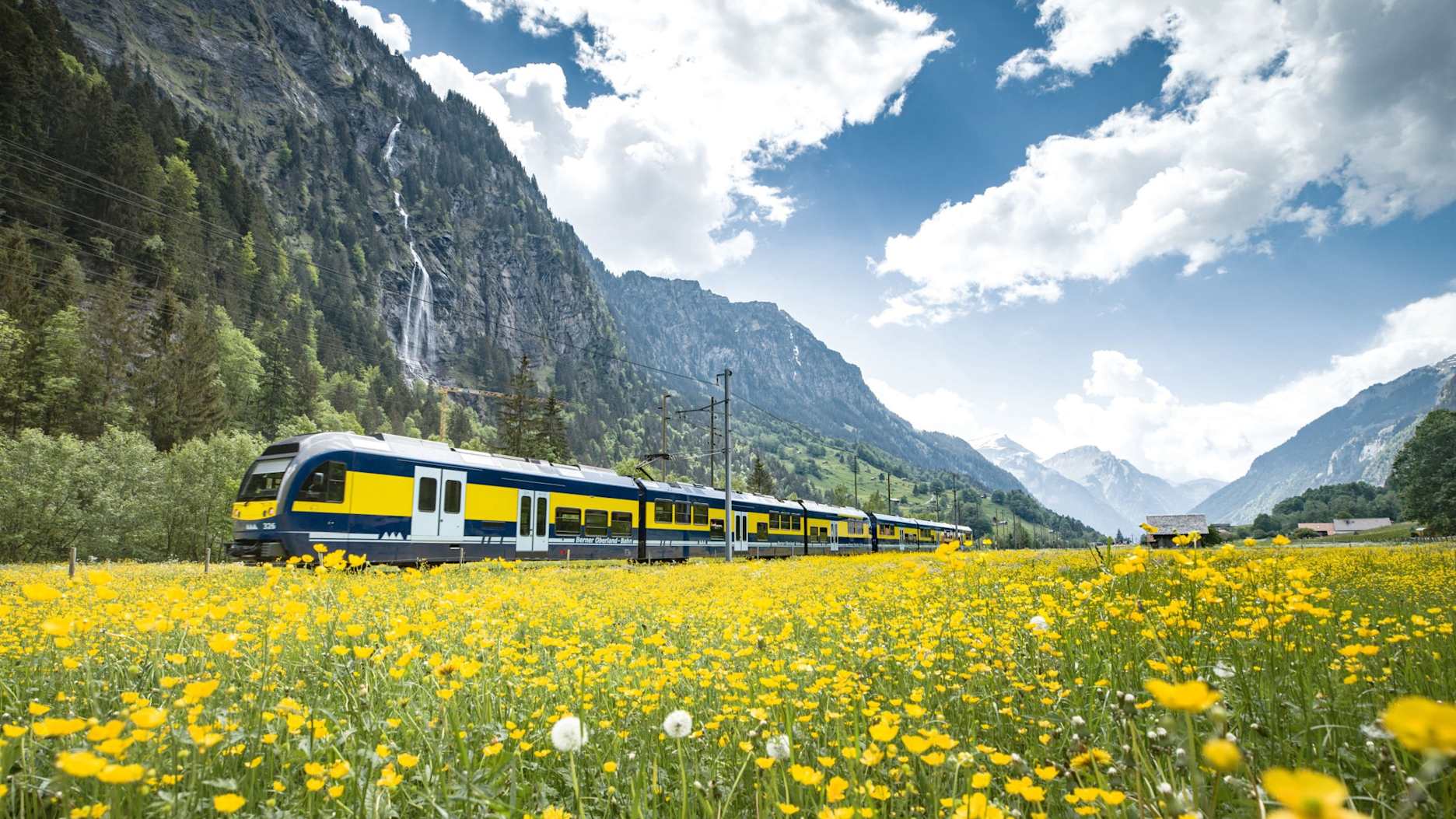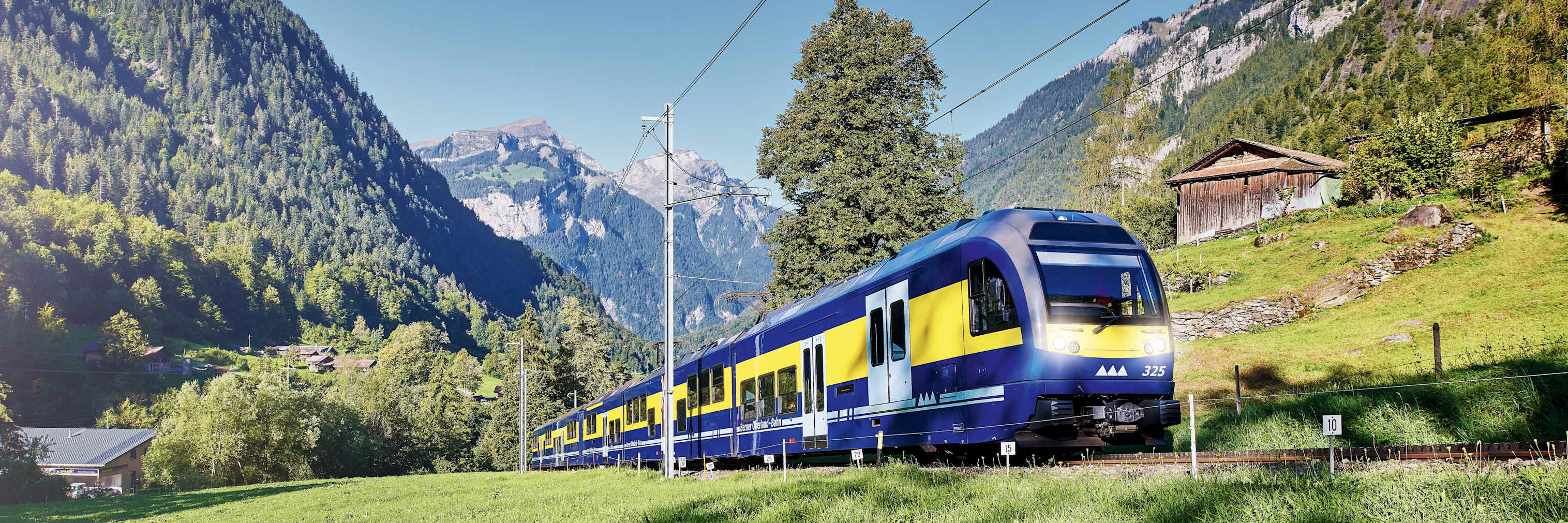 The Bernese Oberland Railway (BOB) is a modern regional railway that connects the Lütschinen valleys with public transport from Interlaken Ost and acts as an important feeder line for the excursion destinations in the Jungfrau Region. As a rule, two trains are coupled together until Zweilütschinen, where they are separated. One train travels onwards to Lauterbrunnen, the other to Grindelwald. All compositions can be coupled together for shuttle purposes, with the locomotive always positioned on the uphill end of the train. A control car with driver's cab is positioned on the downhill end to avoid any switching manoeuvres at turning stations.