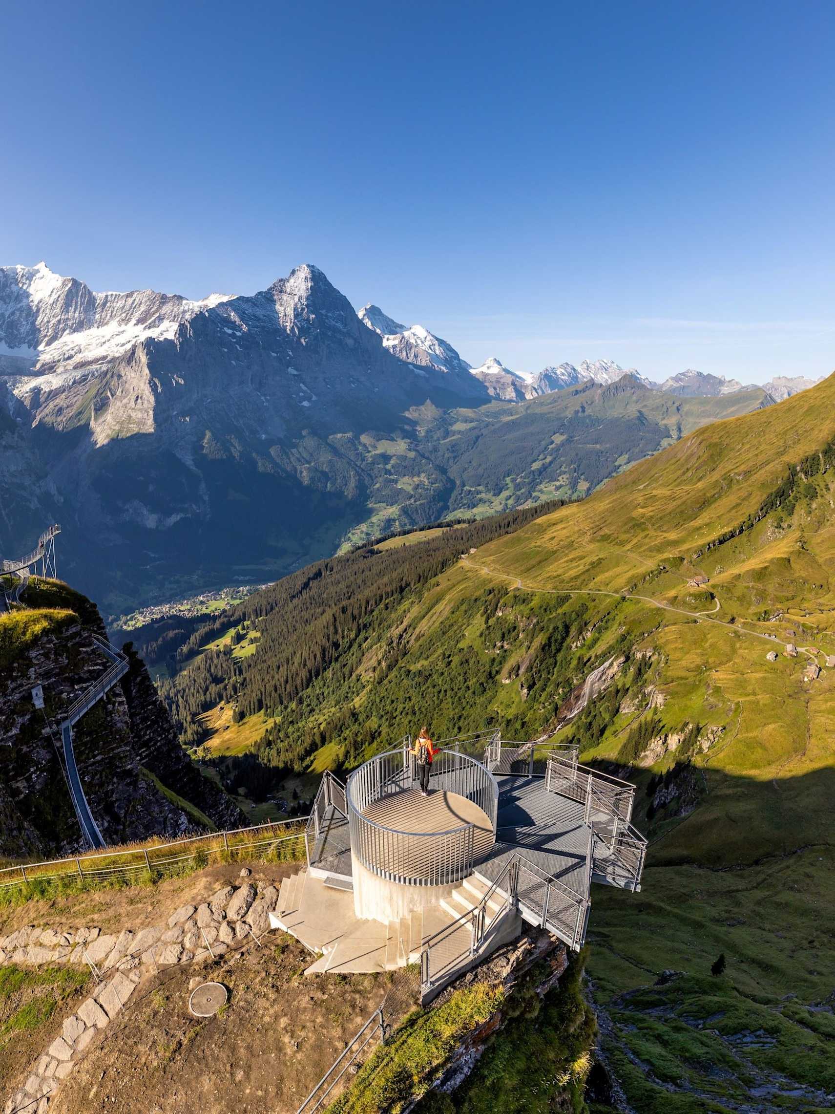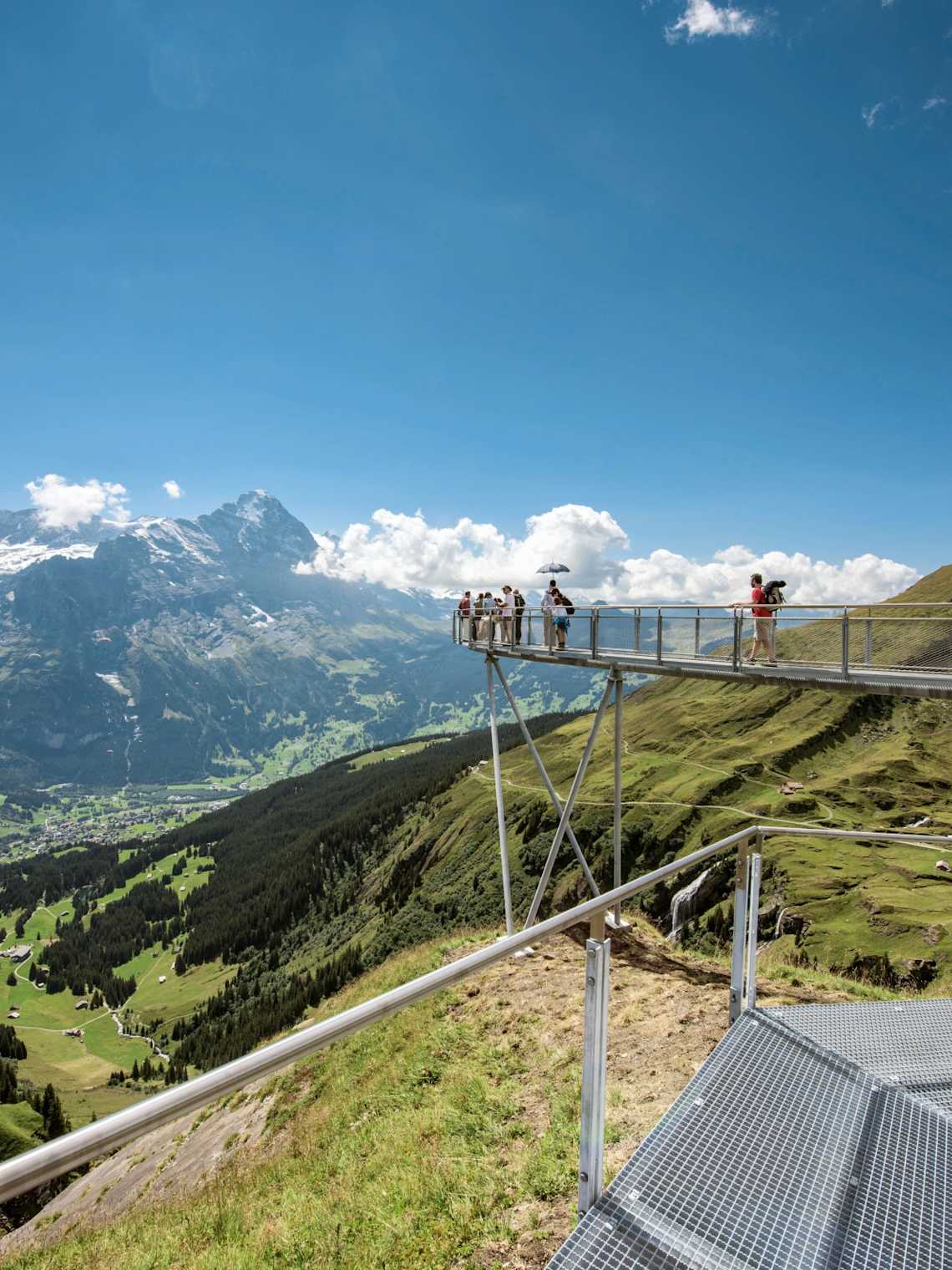 The initial ideas for the construction of a First «railway», albeit as a funicular, began to evolve in the 1930s. A company was founded in 1938. However, the various projects ground to a halt, mainly because of the Second World War. After the end of the war, the Ludwig von Roll’schen Eisenwerke AG designed a completely new system for mountain «railways» that was used on First: the chairlift. The cost of such an installation was far lower than any other previously known mountain railway system. On December 1946, the two sections of Grindelwald-Oberhaus and Oberhaus-Bort, and on February 1947 the Bort-Egg section as well as the Egg-First section were handed over to the company. The official inauguration took place on 15 June 1947.