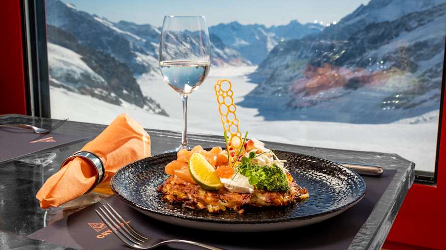 Icy air sweeps over your face, snow crunches underfoot, and the panorama almost takes your breath away: on one side the view of the Swiss Plateau as far as France, on the other the Aletsch Glacier, lined with four thousand metre peaks. Standing on the Jungfraujoch 3454 metres above sea level, you can feel it with your first step: this is a different world. It's one you have to experience.