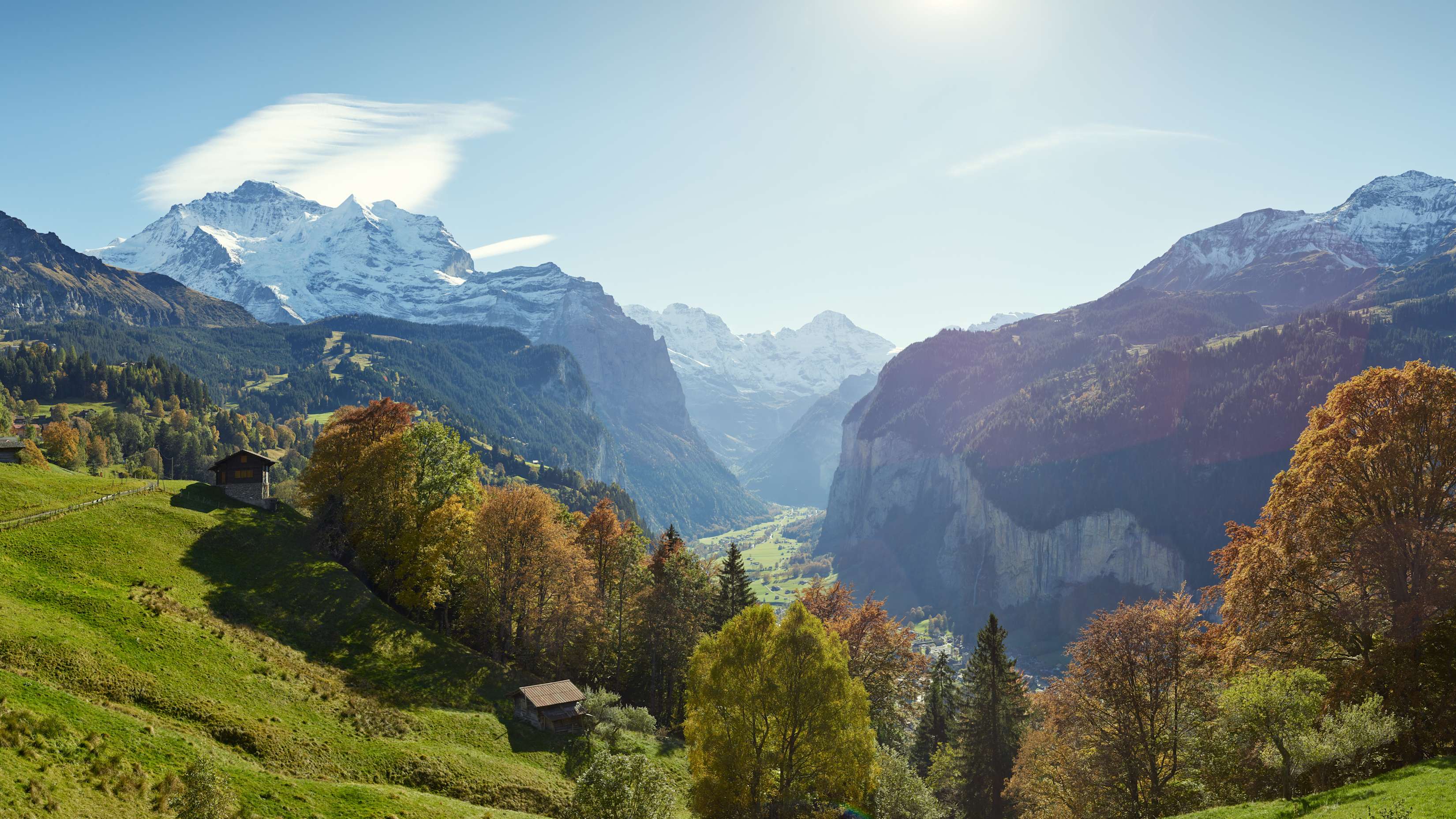 The Jungfrau in the background, flanked by the immense panorama of the Bernese Alps, at the foot of the spectacular Lauterbrunnen valley: Wengen offers a pure mountain experience. In the car-free Lauberhorn village, which is only accessible by the Wengernalp Railway, relaxation is guaranteed, whether hiking or taking in the sun on the terraces of hotels and restaurants.