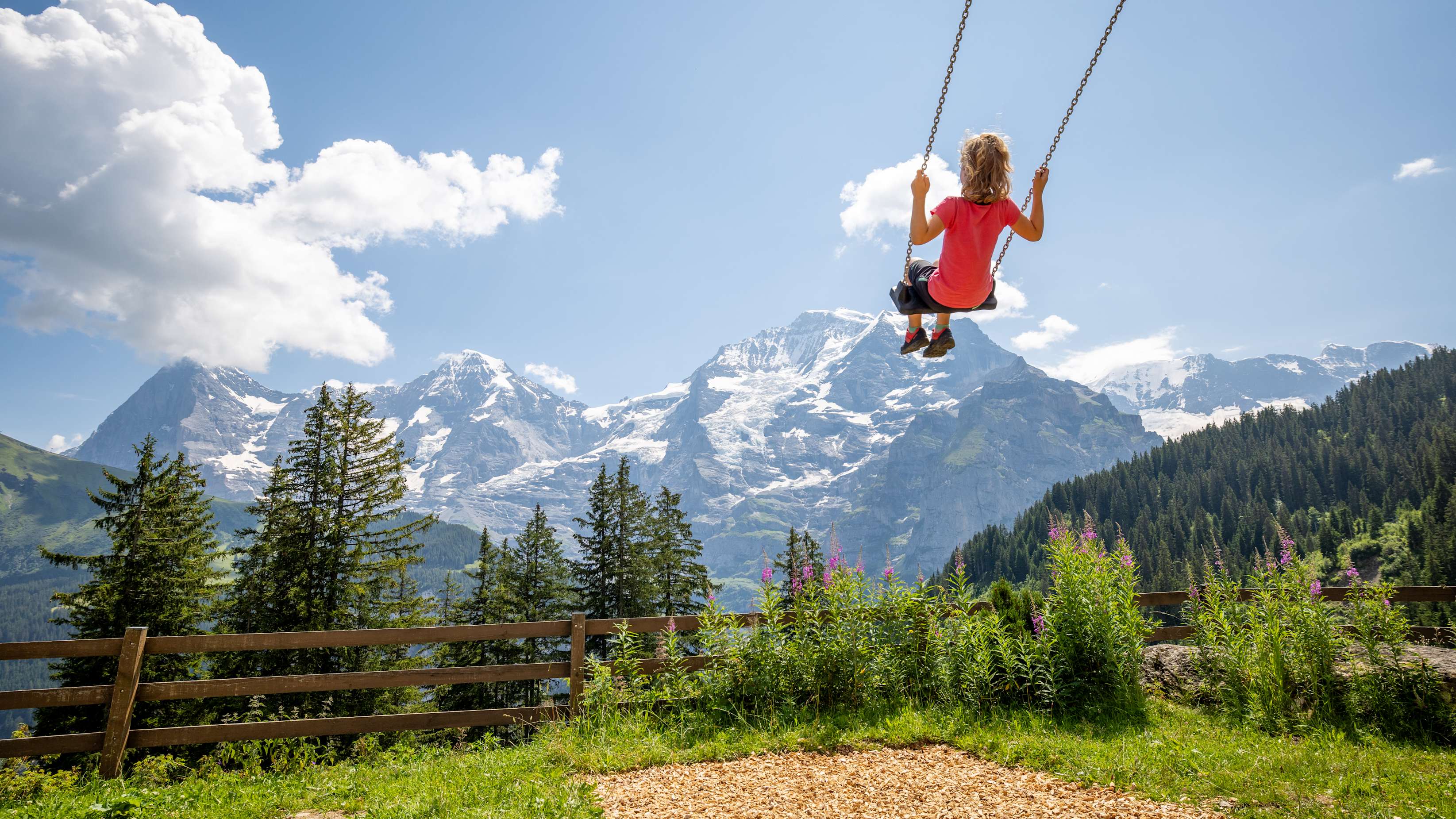 Whether a family outing, a hike, or a cosy meal – Winteregg-Mürren delights with its views of the Eiger, Mönch, and Jungfrau. The Panorama Swing is a favourite for both young and old.