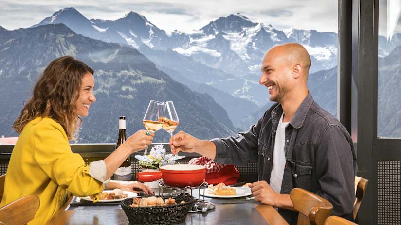 Les tours pittoresques du restaurant panoramique du Harder Kulm se dressent au-dessus d’Interlaken. Il se targue de combiner une vue fantastique, une nourriture délicieuse et une bonne accessibilité. De la station inférieure, le Harderbahn vous emmène jusqu’à la montagne d’Interlaken en seulement dix minutes. Il a tout pour satisfaire tous les appétits. Et ceux qui ont faim de belles vues en auront également pour leur argent: Interlaken avec le lac de Thoune et le lac de Brienz à ses pieds, le célèbre trio Eiger, Mönch et Jungfrau toujours bien en vue.