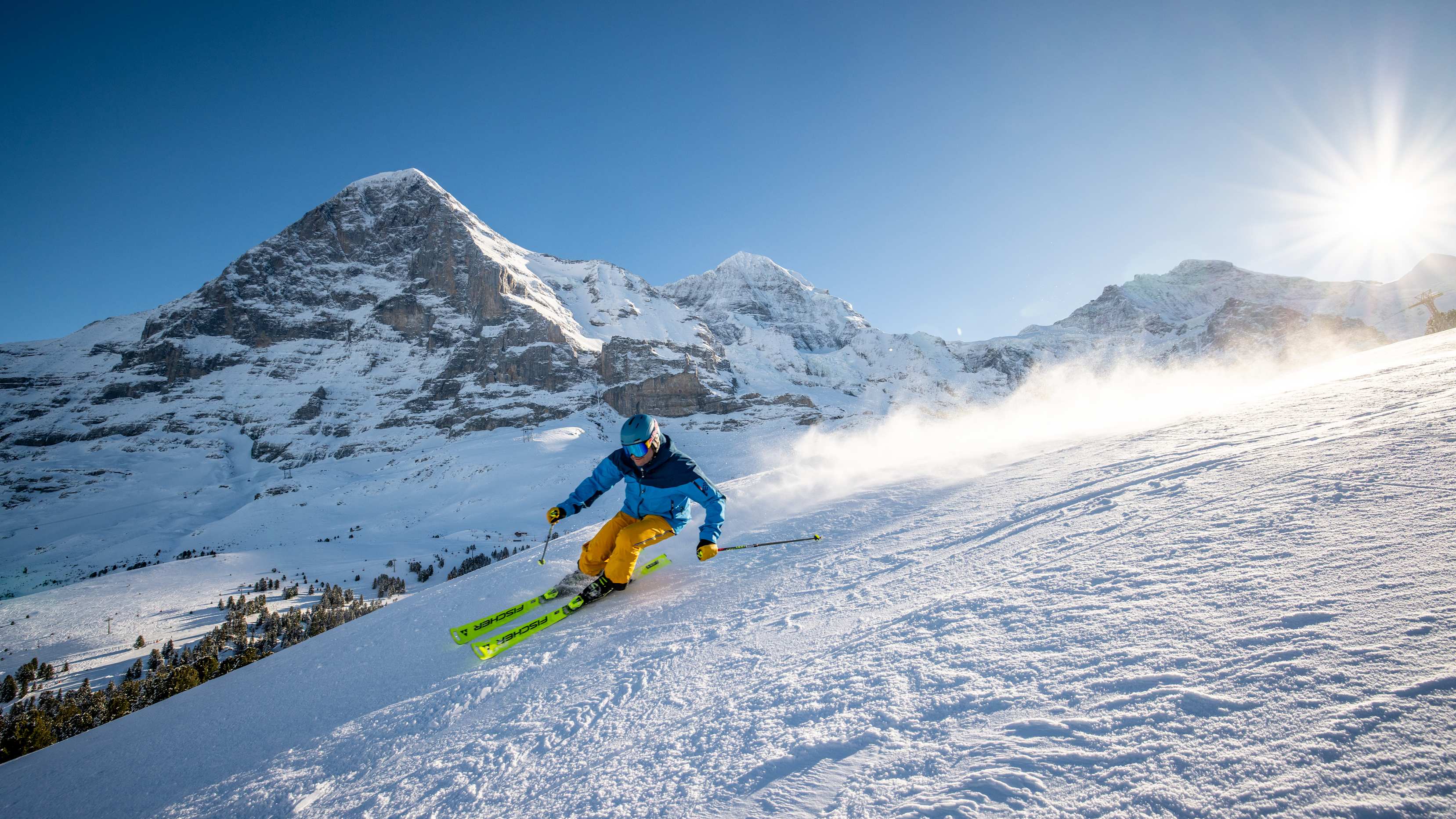 La neige tombe sur les montagnes entre Grindelwald et Wengen, et cela ne refrène pas les ardeurs des amateurs de sports d’hiver. Cela ne les empêche pas de dévaler à ski ou en snowboard les pistes de la Kleine Scheidegg, du Lauberhorn et de Männlichen. Sans jamais perdre de vue les trois sommets célèbres dans le monde entier et qui donnent à la Jungfrau Ski Region son caractère unique.