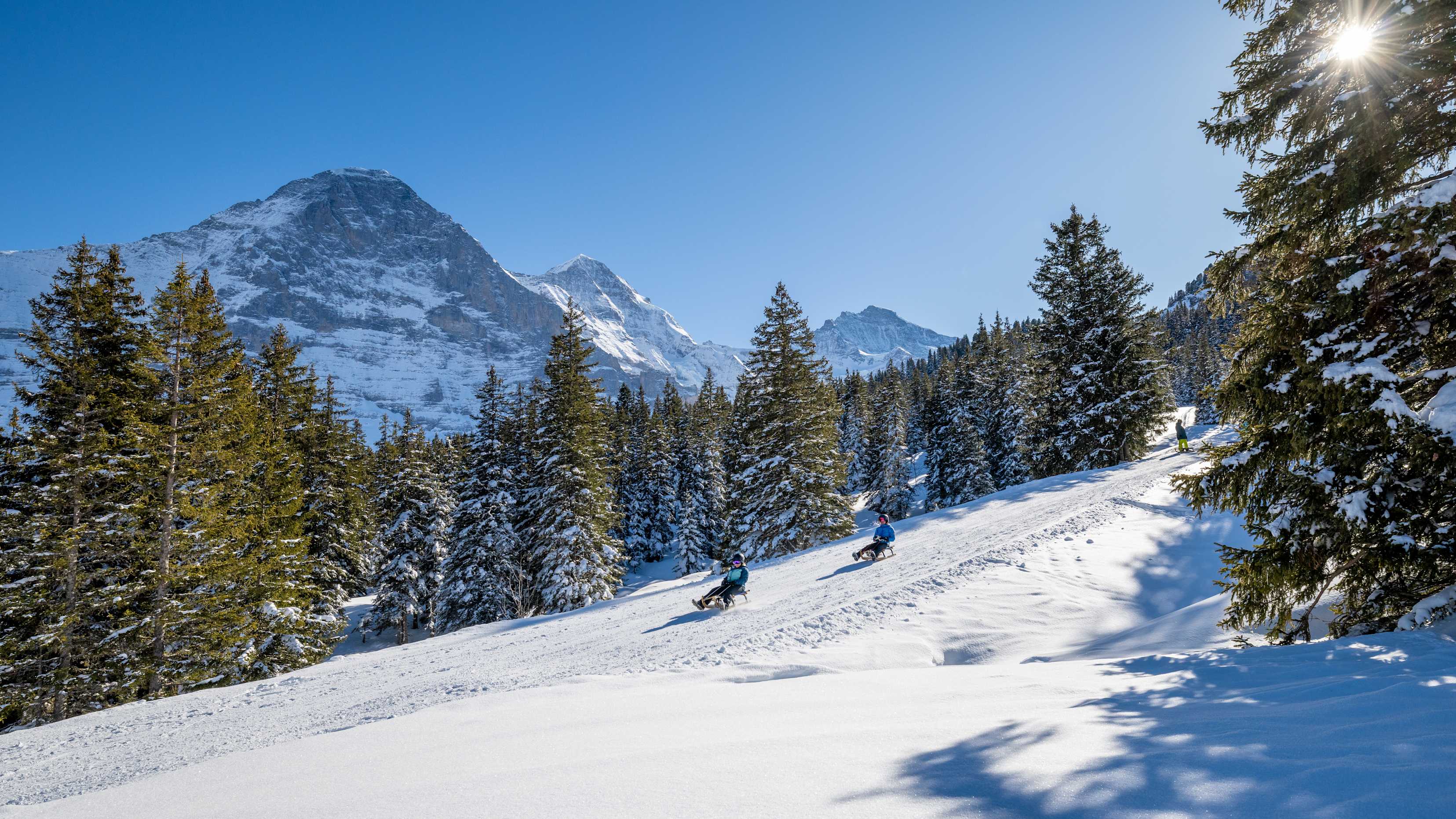Le téléphérique Wengen-Männlichen ou la télécabine Grindelwald-Männlichen vous emmènent confortablement du terminal de Grindelwald jusqu’au Männlichen. À 2’225 mètres d’altitude, le plaisir de la luge commence pour les petits et les grands. La piste de luge ultra rapide commence directement à la station supérieure du téléphérique et offre de nombreux virages et beaucoup de plaisir. Si les conditions d’enneigement le permettent, vous pouvez descendre en luge jusqu’au village.